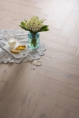 Coswick Английская ёлка 3-х слойная T&G шип-паз (90°) 1171-3842-20 Акварельный белый рустикальный (Порода: Дуб)Порода дерева:Дуб